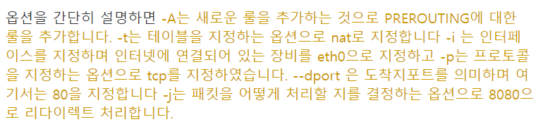 EC2에서 su 명령어를 통해 root로 로그인한 뒤, iptables -A PREROUTING -t nat -i eth0 -p tcp --dport 80 -j REDIRECT --to-port 3000 명령어를 통해서 생략 가능한 80포트로 요청이 들어왔을 때 3000번 포트로 redirect 되게 만든다.